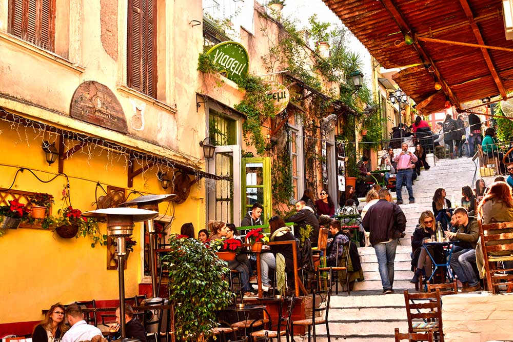 Es una zona abarrotada de tiendas, cafés y restaurantes. Aquí puedes comprar de todo, desde libros antiguos hasta aceite de oliva griego. Puedes comprobar el contraste de un Atenas que puede ser caótico y precioso al mismo tiempo.